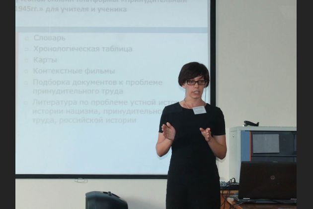 Свои работы по проблеме преподавания темы Холокоста представили участники семинара. О.И. Кулинченко выступила с докладом «И. И. Абкович: изучение проблемы Холокоста на основе биографического киноинтервью».