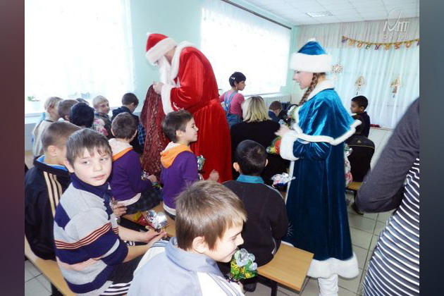 Студенческая благотворительная акция ВИВТ «Распахни свое сердце» завершилась большим новогодним представлением для детей-сирот Бутурлиновской специализированной (коррекционной) школы. Воспитанники школы, а это 60 мальчишек и девчонок с восторгом встретили Деда Мороза, Снегурочку, Бабу Ягу, Лешего и других сказочных персонажей. Ребятишки с огромным удовольствием играли с нашими студентами-актерами, отгадывали загадки, участвовали в конкурсной программе, пели песни. Ну, а самым запоминающимся моментом для них стало получение подарков из рук Деда Мороза: игрушек, канцтоваров, конфет.