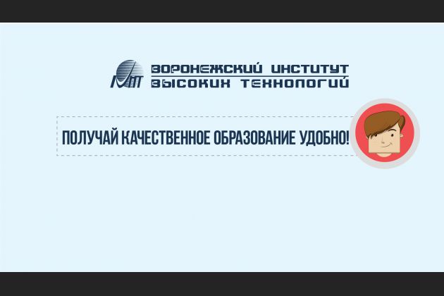 Получай качественное образование удобно! Воронежский институт высоких технологий продолжает набор на заочное обучение! Прием идет на программы подготовки БАКАЛАВРИАТА, МАГИСТРАТУРЫ, АСПИРАНТУРЫ, а также на программы подготовки СРЕДНЕГО ПРОФЕССИОНАЛЬНОГО образования. С основными датами подачи документов, проведения вступительных испытаний и издания приказов можно ознакомиться на сайте вуза в разделе ВИВТ/Приемная комиссия Телефоны для справок 220-56-54, 8-800-555-60-54.