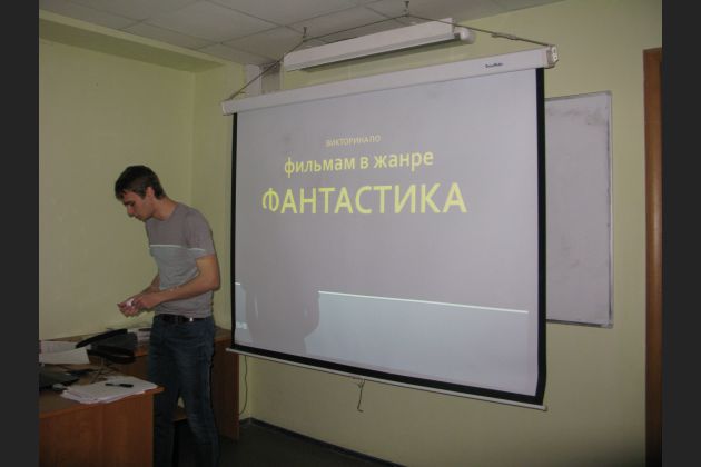 12 декабря прошла викторина по фильмам фантастического жанра. Участвовали: Уколов Дмитрий, Александр Степанчук, Павел Шатов, Евгений Кореневский, Екатерина Двуреченская. Атмосфера соревнования сохранялось до конца викторины. Вопросы были из таких фильмов как: Звездные войны; Терминатор; Хищник; Иван Васильевич меняет профессию; Чужой и многие другие. Со счетом 27 баллов победил Уколов Дмитрий. Он был награжден главным призом – электронной книгой. После мероприятия все участники поделились впечатлениями от викторины и вспомнили фильмы, которые они смотрели или захотели посмотреть после данного мероприятия. Вечер завершился просмотром в кино-клубе фильма «Монстры в Париже».