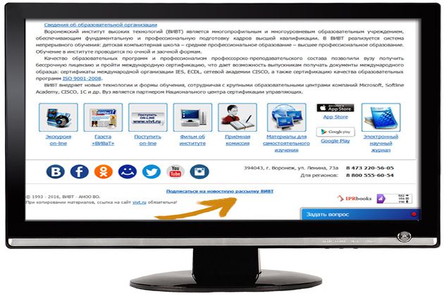 Для удобства тех, кому интересны новости, события и актуальные предложения нашего вуза, мы ввели возможность подписки на новости ВИВТ. Чтобы подписаться, вам достаточно нажать на кнопку "подписаться на новостную рассылку ВИВТ" в нижней части сайта и ввести свой адрес электронной почты.