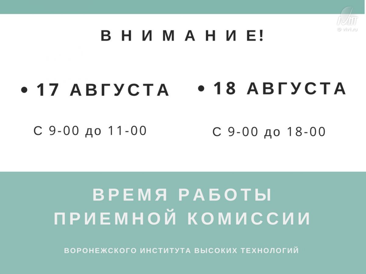 Внимание! Изменение времени работы приемной комиссии 17.08.2017