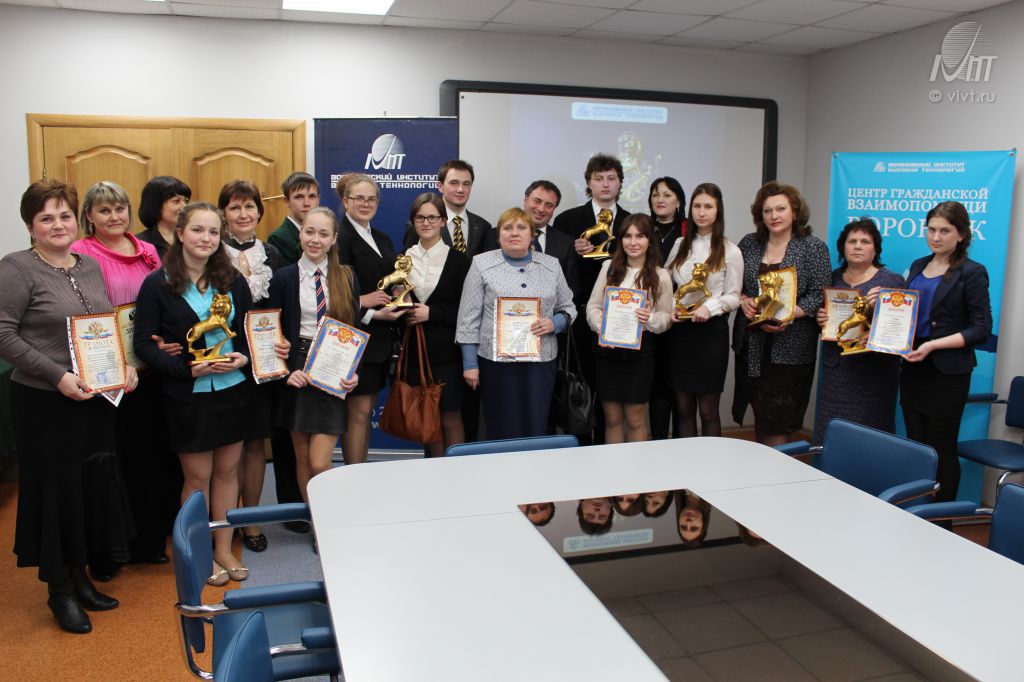 4 апреля 2014 года в конференц-зале Воронежского института высоких технологий в девятый раз прошла торжественная церемония награждения победителей общественной премии «Золотой лев». школ. Открыл церемонию награждения ректор ВИВТ Игорь Яковлевич Львович. Он подчеркнул, что при создании премии «Золотой лев», главной целью было формирование площадки, которая даст возможность талантливым воронежским школьникам развиваться и быть признанными, поблагодарил всех участников, подавших заявки на конкурс, и пожелал дальнейших успехов в учебе и творчестве!